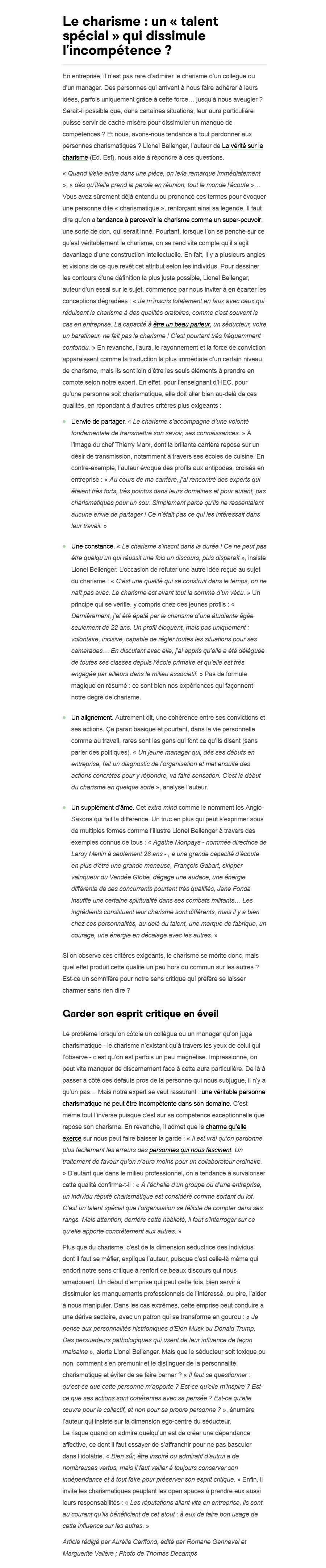 C'est un discours qui n'est pas parfait, récité. Hors de toute forme d'arrogance donc proche, accessible et pas « hors sol », clair sur ce qui le fonde : pourquoi, au nom de quoi et dans quel but ? Le discours est réussi si l'auditoire peut en faire quelque chose : agir, expérimenter, douter, remettre en question, conforter, inciter à aller plus loin. La notion de déclic est intéressante, c'est en phase avec la brièveté d'un pitch : quelques minutes pour créer quelque chose. L'idée d'ouvrir, de montrer un chemin, de donner envie d'en faire plus, me parait raisonnable. |